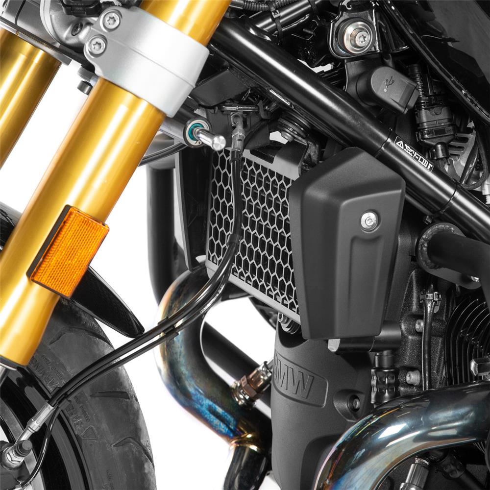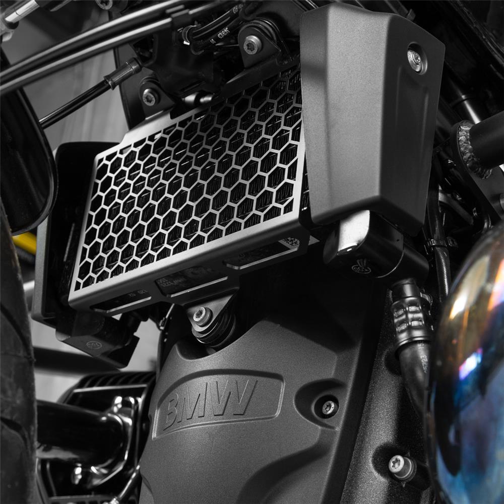 - Специально разработанная защитная решётка радиатора для мотоциклов BMW R12 nineT модельных годов 2024–2026